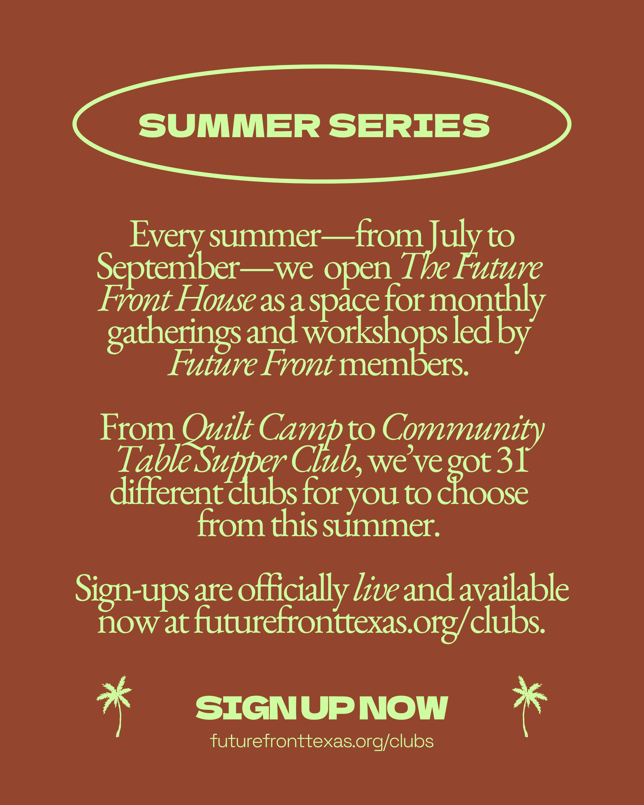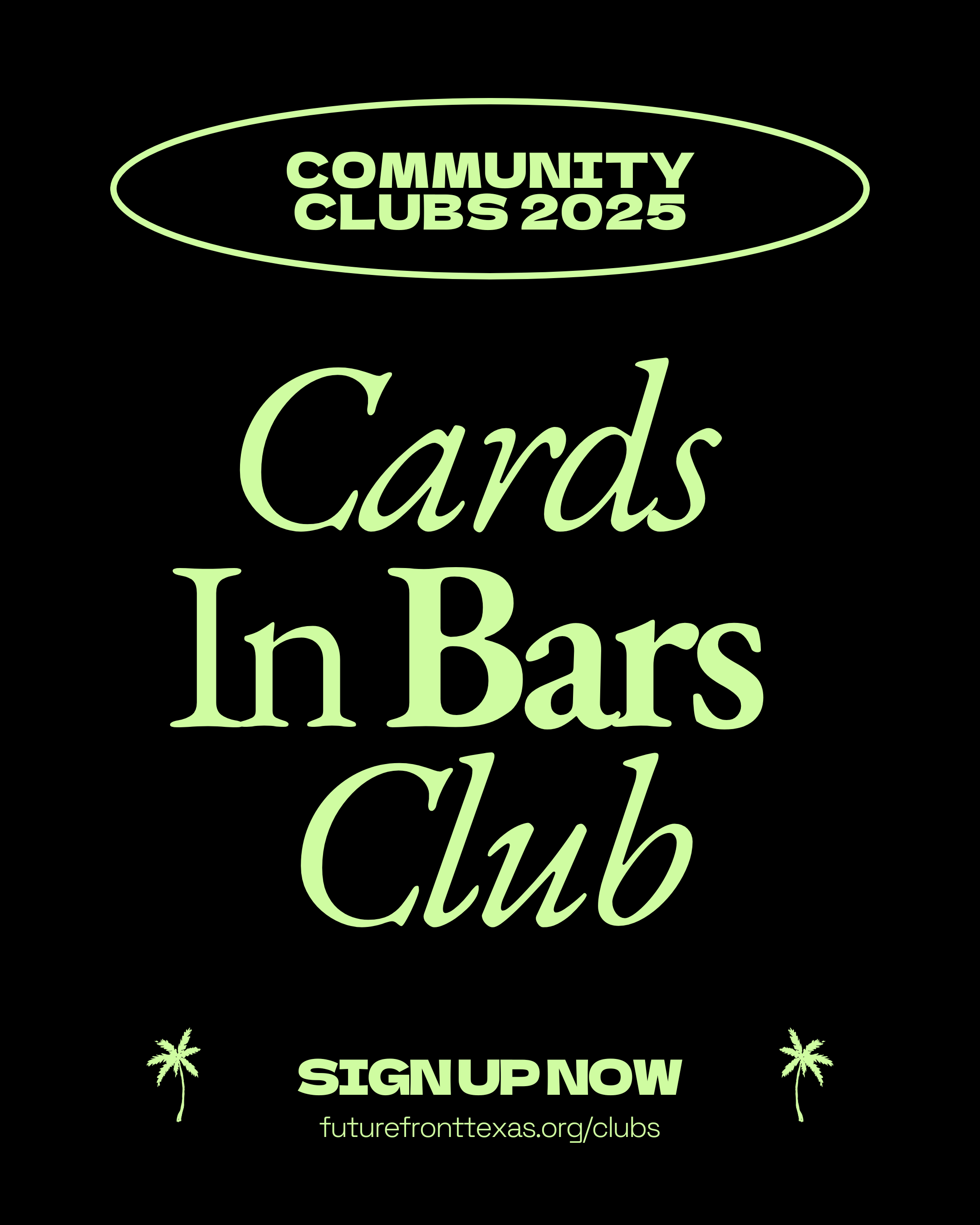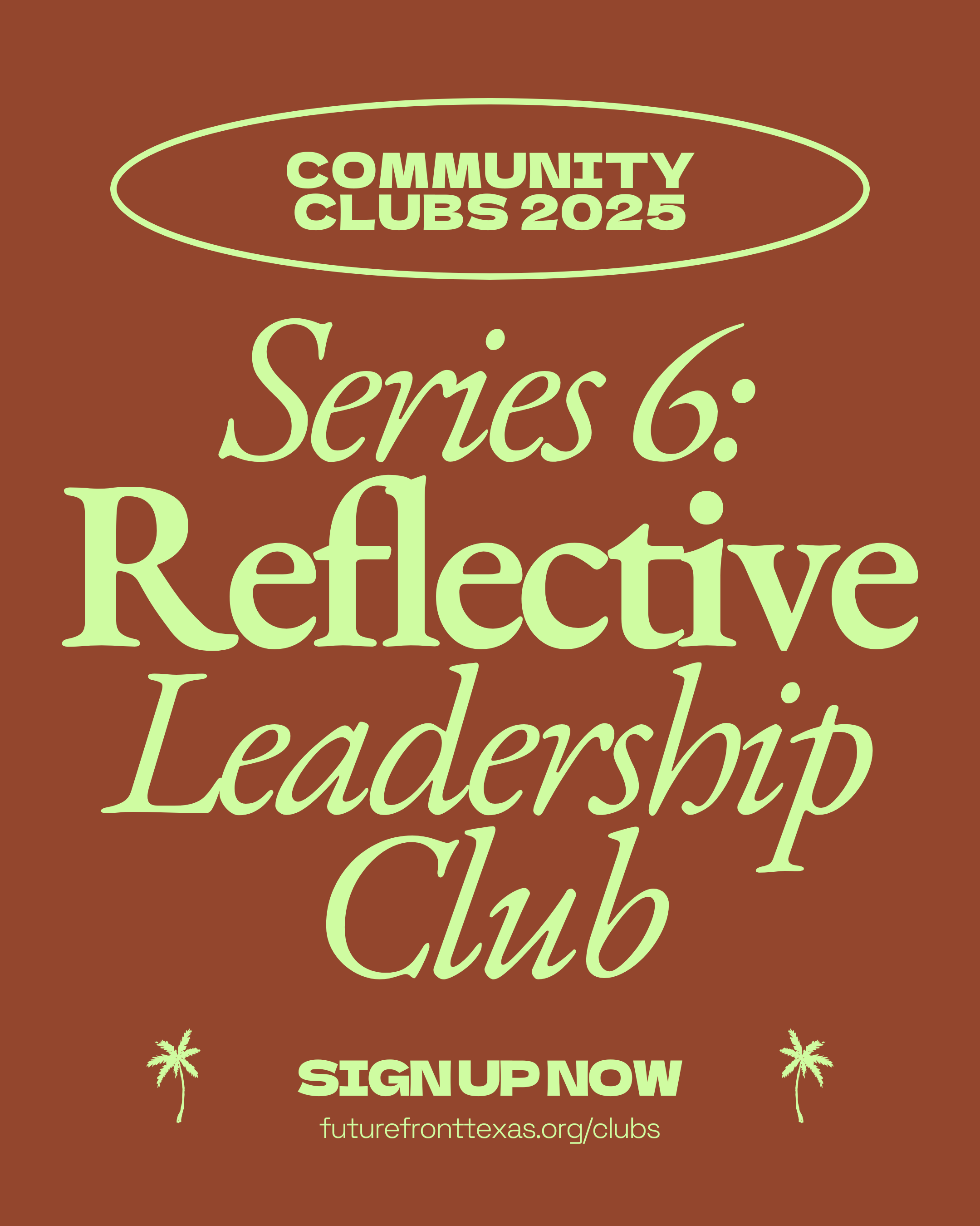 Please email questions regarding Community Clubs to hello@futurefronttexas.org, and we will connect you with that club’s host.