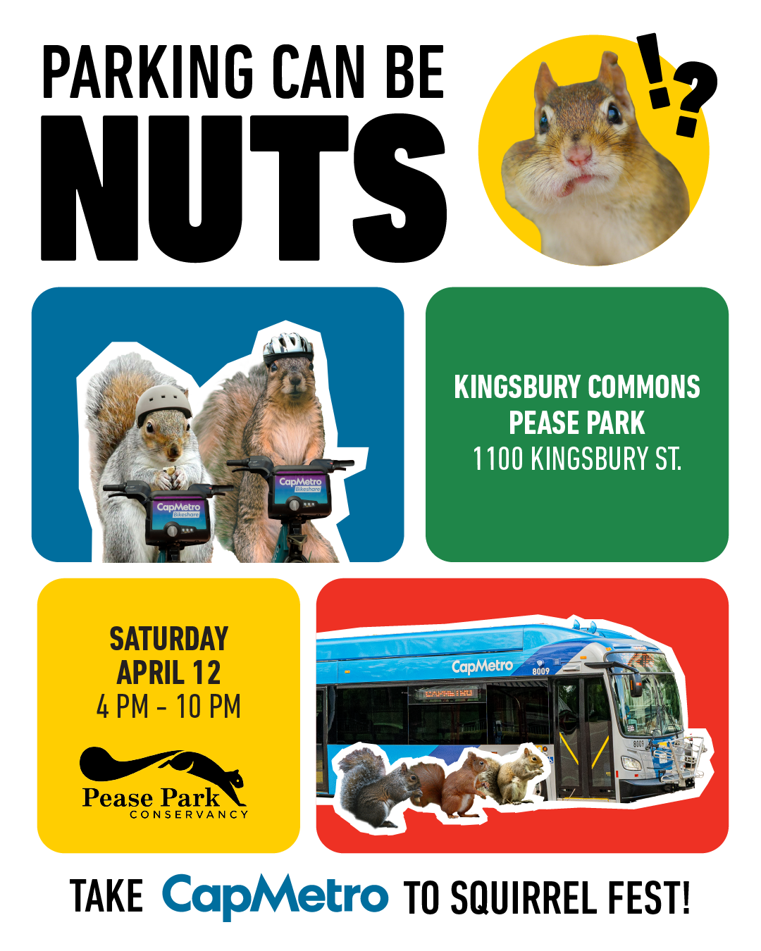 We’re back for a soft afternoon of all-ages creative workshops, outdoor DJ sets and community vibes during Pease Park’s Squirrel Fest—an annual day to celebrate Spring, Austin’s natural ecosystems and the city’s iconic native squirrel.