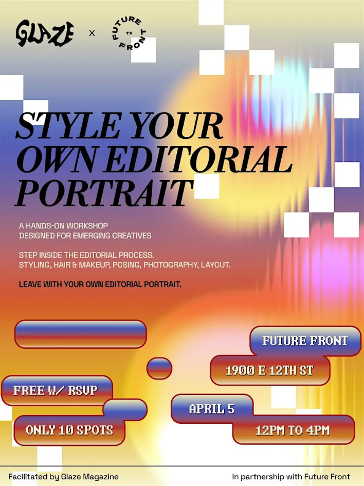 Join Glaze Magazine and Future Front for an immersive workshop where participants step inside the editorial process and create their own styled portrait.