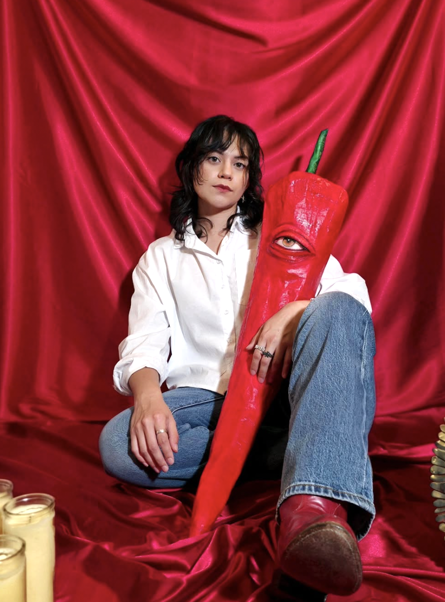 Carla Santillana is an artist and art educator from Brownsville, Texas, currently based in San Antonio. Working across oil painting, textiles, and sculptural forms, including handmade masks, her practice explores how emotion is held and expressed through the body. She is a 2026 Changarrito Resident at the Mexic-Arte Museum in Austin, and her work was featured on the cover of Bittersweet Memories, a publication by a Rio Grande Valley artist.