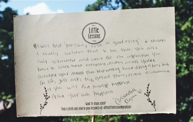 That's why we're thankful for people like Julie Garcia. Julie reached out to us about tabling a "Little Lessons" booth at our August 2015 meet to collect words of wisdom, streams of consciousness and truth bombs from the attending bossbabes.