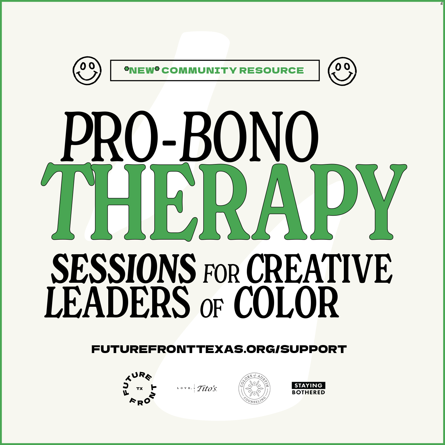 Presented by Future Front in partnership with Colors of Austin Counseling, The Community Leaders of Color Mental Health Project is an ongoing resource for Black, Indigenous and non-white leaders of color pursuing racial justice in creative, community, business and work settings.