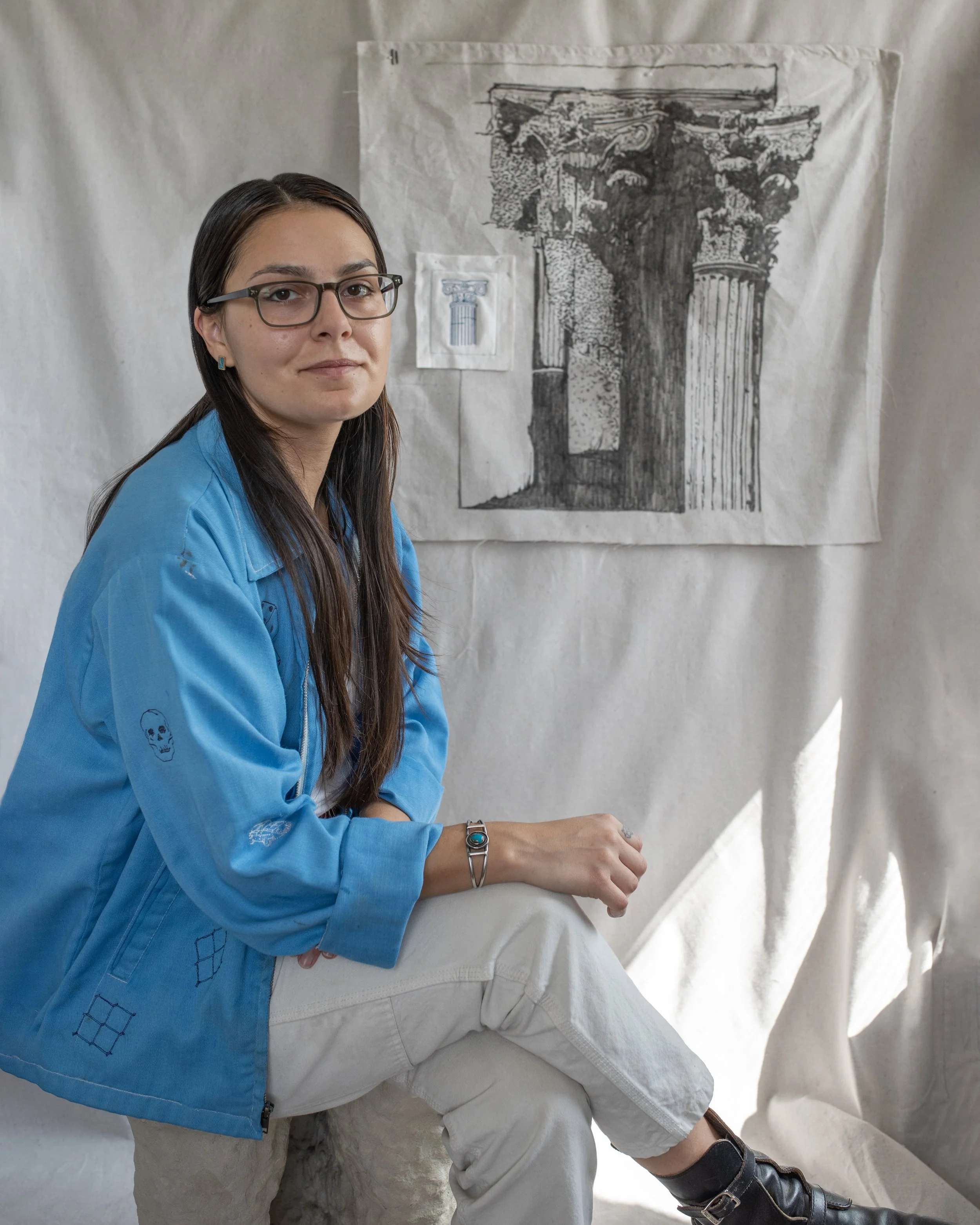 Samantha Asencio (she/her), aka Future Vagabond, is an interdisciplinary artist originally from New York. Shortly after graduating from Pratt Institute in 2015, she relocated to Austin, where she continued her sculptural work. Over time, she shifted her focus to embroidery and later founded the brand FV. The work explores themes of the American road trip, draws on historical references, and examines the notion of impermanence. Her practice invites viewers to consider how memory, travel, and time intertwine.