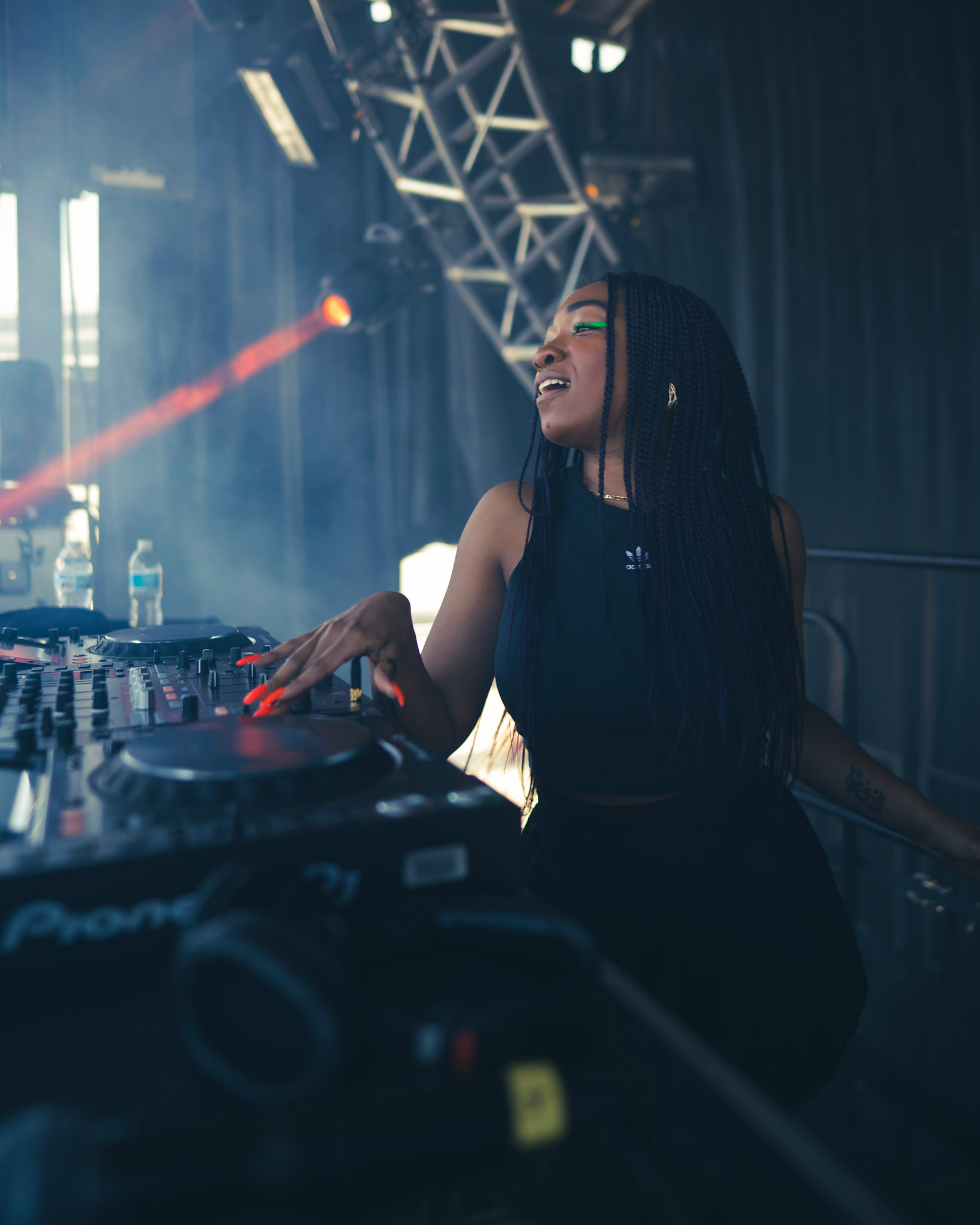 Appolonia Chukwu (she/her), professionally known as DJ BAD APPLE, is a dynamic Black Nigerian-American DJ, music producer, music supervisor, and writer based in Austin, Texas. DJ BAD APPLE has performed at the world-renowned Concourse project for Seismic Dance Event as well as DJ Mag, Formula 1 and Circuit of the Americas, SXSW, and opened for acts like Thundercat, TSHA, DJ Holographic, Trixie Mattel, Shea CouleΓ©, and more. She is a vocal advocate for Black Women in music. She is a pioneer in amplifying minority voices in the industry, notably as Resident Advisor's first City Manager of Austin, and through her award-winning thesis on Black Womenβs cultural production in the music space. Her blend of art and activism forges connections and community, embodying the essence of a modern artist and change-maker.